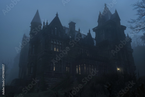 Haunted graveyard scene with eerie trees, silhouettes, and a spooky atmosphere at dusk.