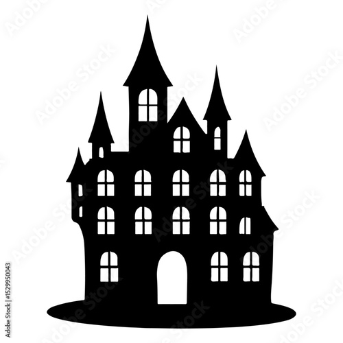 Haunted Halloween Castle Silhouette Vector – Spooky Scary House Art.