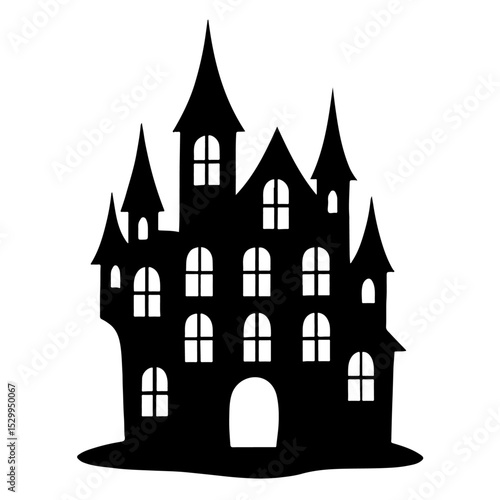 Haunted Halloween Castle Silhouette Vector – Spooky Scary House Art.