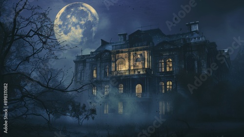 Haunted Mansion at Night