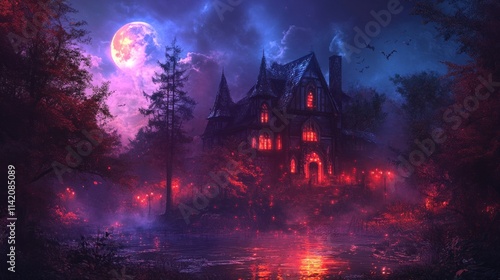 Haunted Mansion on a Moonlit Night