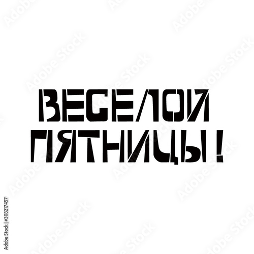 Have a Fun Friday stencil lettering in russian language. Spray paint cyrillic graffiti on white background. Design lettering templates for greeting cards, overlays, posters