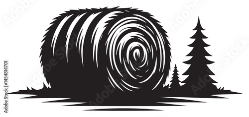 Hay bale and pine trees landscape vector graphic illustration
