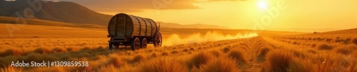 Hay wagon makes way through sea of golden hues, golden hues, scenery