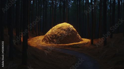Haystack Under Trees in Soft Evening Light