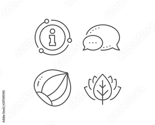 Hazelnut line icon. Chat bubble, info sign elements. Tasty nut sign. Vegan food symbol. Linear hazelnut outline icon. Information bubble. Vector