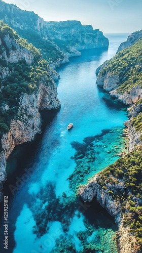 HD Phone Wallpaper Stunning Aerial View of Turquoise Cove Boat Cliffs and Lush Mediterranean Coastline