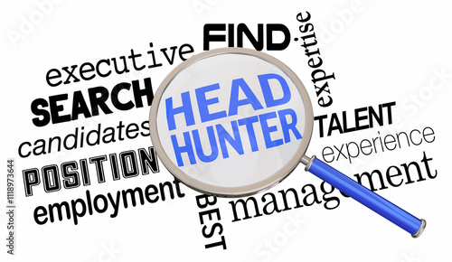 Head Hunter Magnifying Glass Best Job Candidate Search Look For Executive Employee 3d Illustration