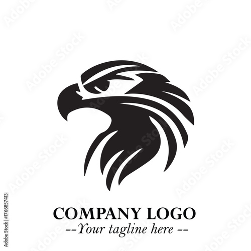 Head of Eagle Logo Symbol in Black on the White Background with Strong Elegant Design
