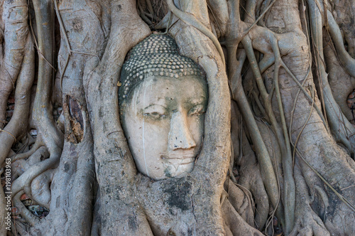 Head of the Buddha entangled in tree roots