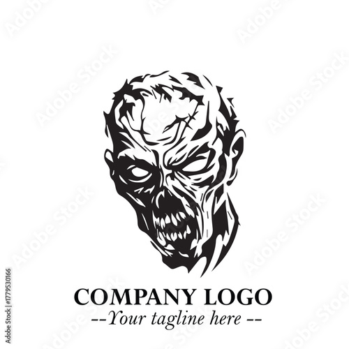 Head of Zombie Logo Symbol in Black on the White Background with Horror Minimal Vector Design