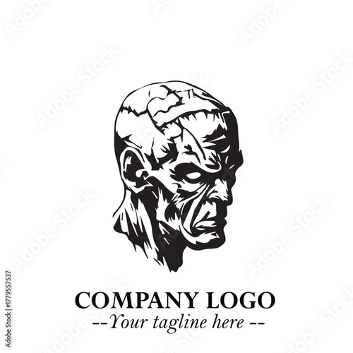 Head of Zombie Logo Symbol in Black on the White Background with Horror Minimal Vector Design