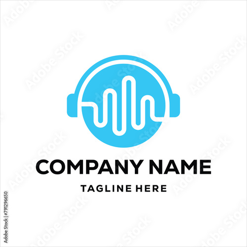 Headphone icon with music beat, Headset Logo, design inspiration, vector