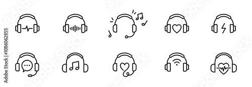 Headphone icons set. Earphones Music symbols. Headphones, headset accessory icon. Vector symbol