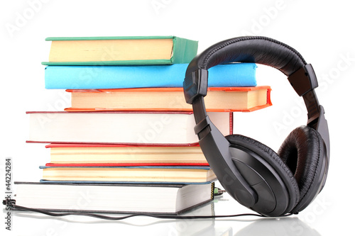 Headphones on books isolated on white