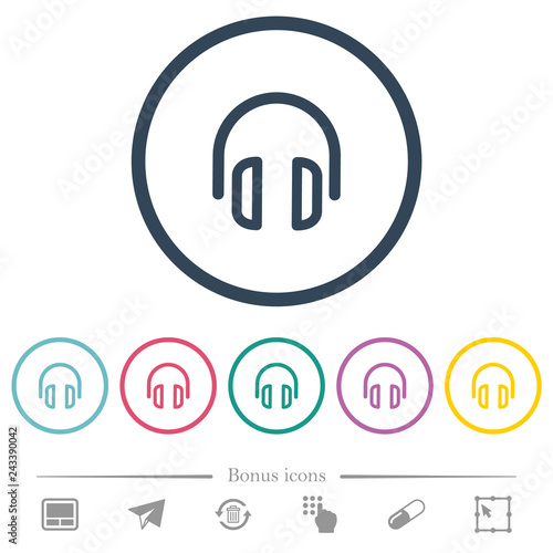 Headset flat color icons in round outlines
