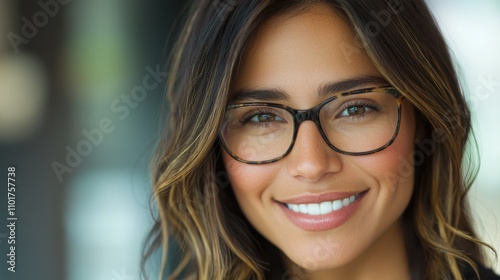 Headshot close up face portrait of young happy smiling Hispanic businesswoman, female company worker or corporate manager, confident business woman entrepreneur looking at camera at work in office.