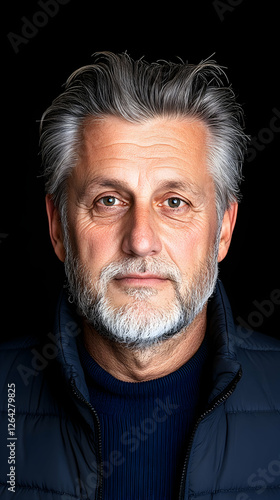 Headshot of handsome gray haired mature man in jacket against a dark background generative AI