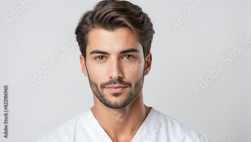 headshot of nurse handsome guy model on plain white background studio from Generative AI