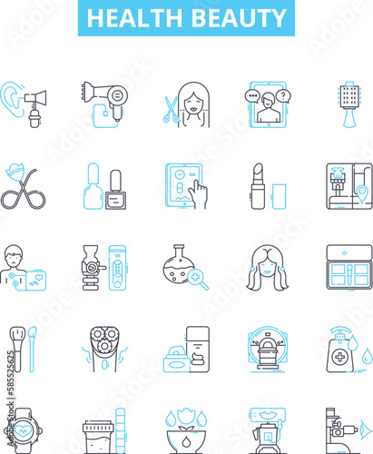 Health beauty vector line icons set. Beauty, Health, Skin, Hair, Care, Cosmetic, Fitness illustration outline concept symbols and signs