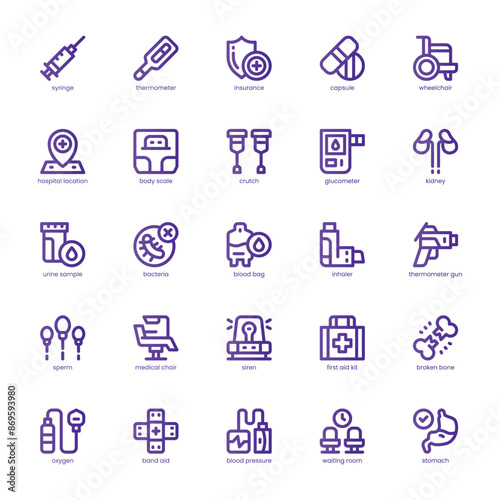 Health Checkup icon pack for your website, mobile, presentation, and logo design. Health Checkup icon basic line gradient design. Vector graphics illustration and editable stroke.