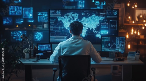 Health insurance concept, doctor working in office with visual screen technology