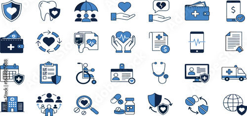 Health insurance icon set. editable stroke. vector illustration