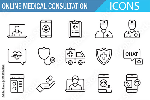 Healthcare Communication Icons — Chat Bubble, Phone, Laptop