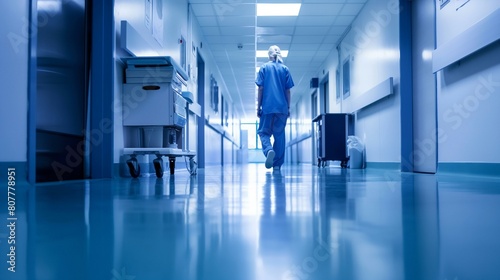 Healthcare Compliance Officer Inspecting a Hospital Hallway, Focus on Safety and Standards
