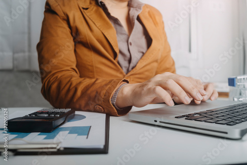 Healthcare costs and fees concept.Hand of smart doctor used a calculator for medical costs in modern hospital