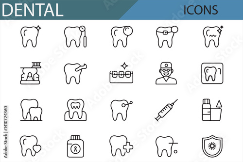 Healthcare Dental Icons - Vector Symbols of Dentistry Tools and Treatments for Medical Projects