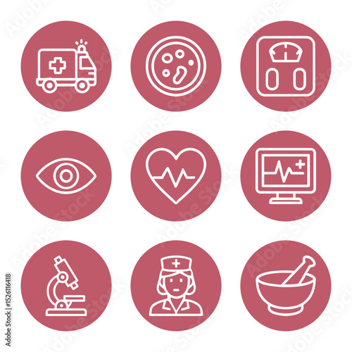 Healthcare round icons with symbolic meanings. Icon symbol illustration