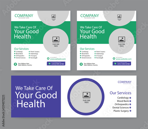 Healthcare social media post design bundle. Medical healthcare web banner template. Your health is our priority flyer design template