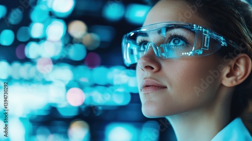 Healthcare Technology patient concept. Woman using a futuristic holographic interface
