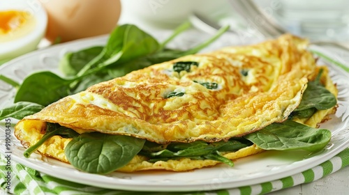 Health-Conscious Breakfast with Spinach and Egg Omelet, Garnished Delight.