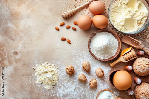 Healthy baking ingredients. Top view, copy space.
