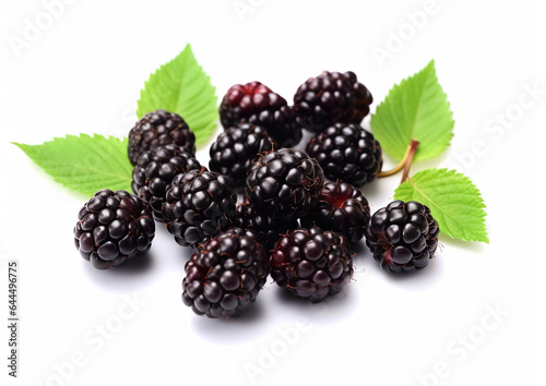 Healthy blackberries with leaves on white background.Macro.AI Genreative