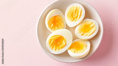Healthy breakfast ideas boiled eggs with creamy egg yolk nutrient-rich start in a minimalist kitchen environment