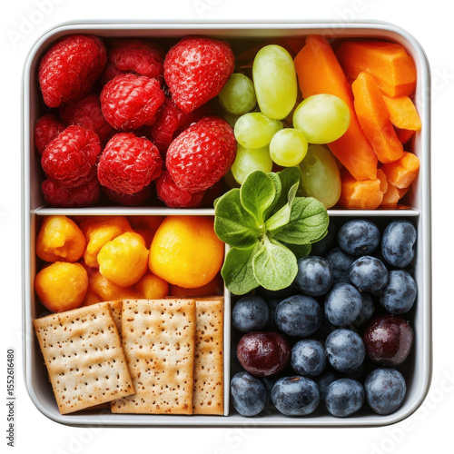 Healthy Colorful Lunchbox with Berries Grapes Crackers Fruits and on transparent background