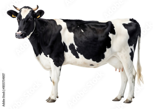Healthy Cow Standing Upright with Short Horns Isolated on White Background