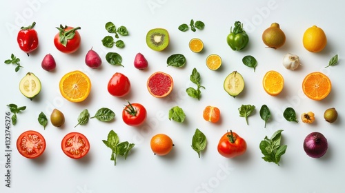 Healthy eating background. Food photography different fruits and vegetables isolated white background. Copy space. High resolution product