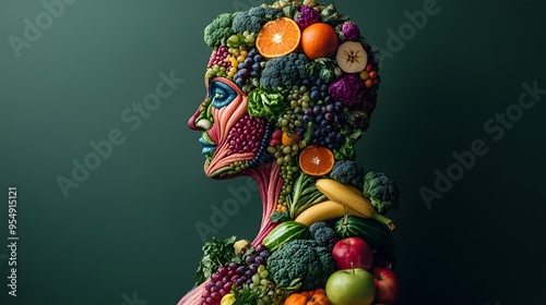 Healthy Eating Concept Human Figure Made of Fresh Fruits and Vegetables