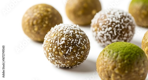 Healthy Energy Balls Made From Oats Nuts And Seeds With Coconut And Matcha Powder