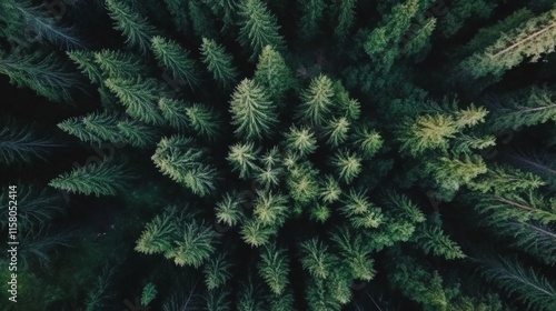 Healthy green trees in a forest of old spruce, fir and pine - ai