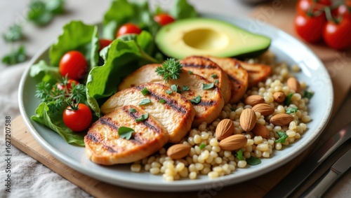 Healthy Grilled Chicken Salad with Couscous Avocado and Almonds