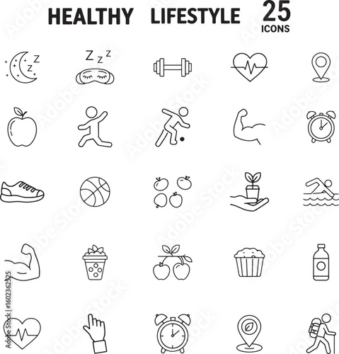Healthy Lifestyle Icon Set with Fitness Nutrition Sleep and Wellness