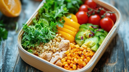 Healthy Lunch Box with Chicken Quinoa Vegetables and Corn