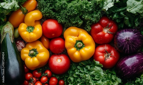 Healthy, natural and eggplant background in studio for farming, organic produce and lifestyle. Fresh, summer food and health meal closeup for eco farm market, fibre diet and vegetable, Generative AI