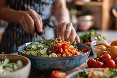 Healthy Salad Preparation in a Modern Kitchen - Nutritious Meal for Balanced Diet, Food Photography
