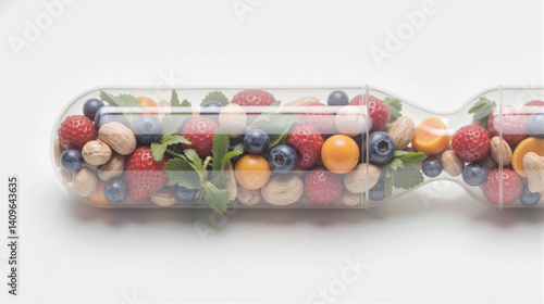 Healthy Snack Mix in Capsule: Strawberries, Blueberries, Nuts & Herbs for Wellness